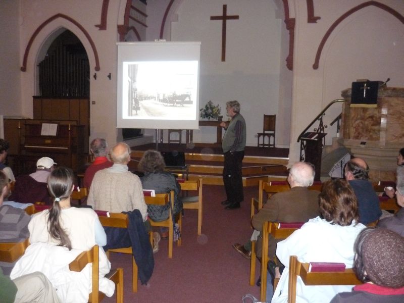 I quoted Val Price, who I had interviewed but who had been unable to make the evening. She had recalled how her father had bought a car in late 1952, and lovingly built a garage to keep it in. However, she recalls that he rarely used it, never using it to pick her up from school, and never taking it out during the week, given that everything he needed was within walking distance. It was only ever used on weekends, for trips to visit relatives. Arthur French, a member of the audience, noted how the age at which people first got cars has fallen during his lifetime. He said that he got his first car at 40, his sons at 25, and nowadays people start driving at 17.