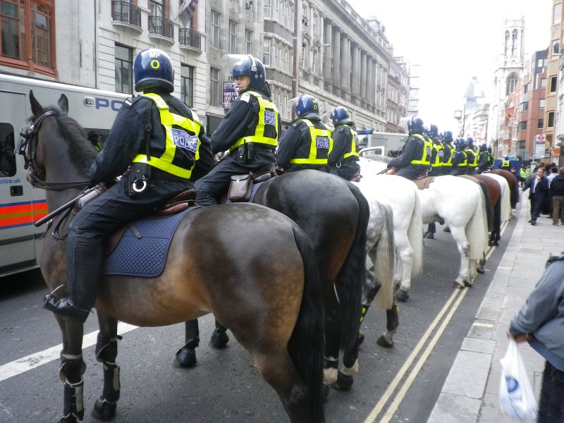 I spent most of the day yesterday around St. Pauls’ Cathedral visiting the Occupy London Stock Exchange camp there. With hindsight I probably didn’t pick the best day. November 9th was also the day of the student protests and the police presence in the city was the biggest I think I have ever seen in my life. From the moment I left St. Pauls’ tube station, there were ranks of police, policevans, dogs, horses, all kinds of different police units all over the place. During the day I was often reminded of ‘Apocalypse Now’ or ‘Boyz in the Hood’, given the constant noise of helicopters overhead, which at times, even made conversation difficult.